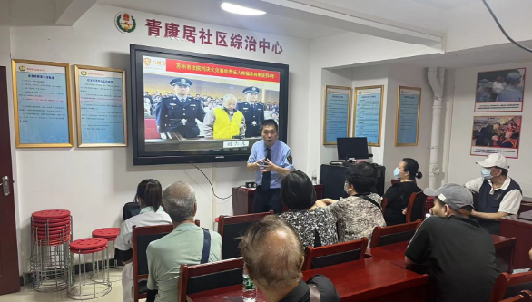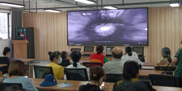 会议期间,社区工作者向大家播放科普视频,视频展示了近年来中国取得的一系列科技成果,涵盖了机械工程、电子工程、新能源、医学、航空等方面。