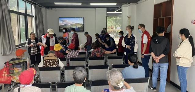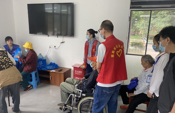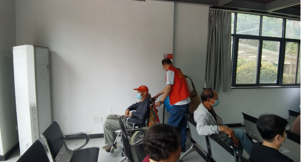 在义诊过程中,遇到腿脚不便,坐着轮椅的老人,社区工作人员也会小心翼翼地将他们带到检查点,这一细心的举动,让在场的老人们连连点赞。
