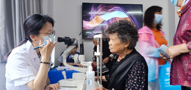 在义诊现场,医护人员认真地通过裂隙灯、验光仪等专业设备为老人们进行眼部检查,并耐心地解答老人们关于眼部健康方面的咨询,做到眼部医疗知识的科普宣传,用通俗易懂的语言想老人们进行解释,并逐一为老人们指出眼部存在的问题,给予科学的健康指导,提出合理的治疗建议。