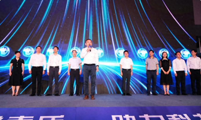 武汉市人民政府副市长孟晖宣布2023年武汉市暨江岸区“全国科普日”活动正式启动,参会嘉宾共同点亮大屏幕。