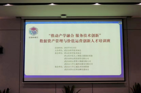 9月15日,由主办,洪山区科学技术协会、洪山经开区人工智能大厦园区科协、武汉市洪山科技投资有限公司、大学之城科技服务有限公司联合承办的2023年数据资产管理与价值运营创新人才培训班首期培训在洪山区融创智谷园区人工智能大厦举行。培训班旨在助力企业准确把握数字经济行业发展新趋势,精准识别市场需求,进行数字经济战略规划和布局,以推动武汉数字经济企业高质量发展。