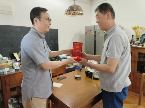 走访慰问老党员,传承党的革命精神。市科协党组成员、副主席张若光专程上门看望老党员,关心老同志的身体和生活状况,为科技馆退休党支部牛勇航同志颁发了“光荣在党50年”纪念章,感谢老同志为科协事业发展做出的贡献,向老党员致以崇高的敬意和节日的问候。