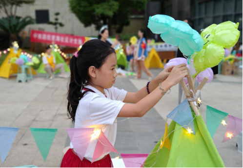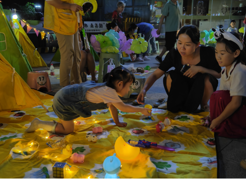 “小姐姐,你的这个首饰盒我好喜欢,我可以用这个月亮灯跟你换吗”,3岁的小萌妹刘锦溪鼓起勇气对正在摆摊的10岁摊主刘珏希提出。9月15日晚,星海社区鸿玺公馆小广场星光闪闪,由中南路街道星海社区、方寸地青少年自然科普教育中心联合开展的星空夜市点亮新“夜”态跳蚤市集活动热闹开集啦,有辖区单位、社区居民、下沉党员、“星连心”志愿服务队近50人参加。