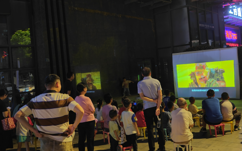 晚风拂面,幕布搭起,光影闪烁...一部充满童趣的少儿电影《哪吒》开始放映,阵阵香甜味儿从旁边传来,原来是棉花糖机在工作,居民们搬好椅子,唠着家常,摇着扇子,吃着棉花糖寻着儿时的记忆,享受露天电影带来的别样滋味。