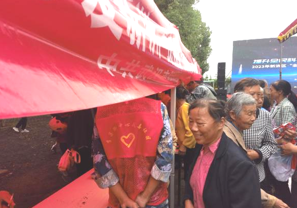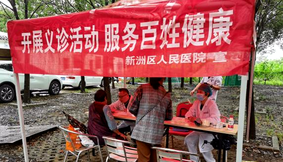 专家义诊活动现场,新洲区人民医院内科主任医师宋郁喜、心脑血管内科副主任医师汪俊军亲自上阵。机会难得,乡亲们纷纷上前测血压,询问关于身体疾病上的问题。