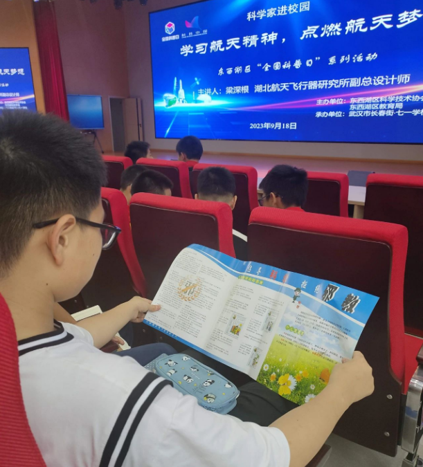 2023年9月18日,区科协联合区教育局,特邀我区荣获2023年度武汉市“最美科技工作者”、2023年第二季度“武汉楷模”称号的湖北航天飞行器研究所副总设计师梁深根,走进武汉长春街七一学校(东西湖校区),为270余名师生开展了一场感人至深、催人奋进的航空航天科普盛宴。