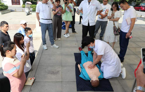同时,为进一步普及群众性的救护知识,增强自救互救能力,三里桥卫生院张文霞医生向大家现场讲解示范了心肺复苏和海姆立克的急救方法,重点强调了“黄金四分钟”在急救中的重要性,并现场展示了海姆立克急救法的正确操作。