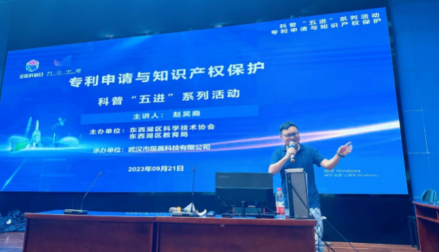 2023年9月21日下午,由区科协、区教育局联合主办,武汉市煜晨科技有限公司承办的“科普进校园”系列活动走进吴家山中学,特邀全球发明大会中英文评委、博士、正高级工程师、国家注册电气工程师、硕士生导师赵昊裔以《专利申请与知识产权保护》为主题为青少年上了一堂生动有趣的知识产权专题科普讲座。现场150多名学生参与,整场讲座深入浅出精彩丰富,学生们在专利发明创造的世界里尽情徜徉。