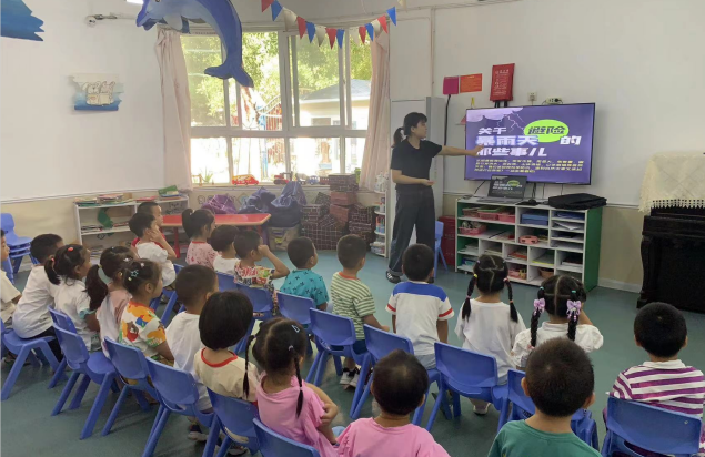 在社区联合辖区内的武昌区阳光花幼儿园开展的以恶劣天气为主要内容的应急科普知识讲座过程中,来自城南社区应急科普志愿服务队的科普老师通过PPT为大家讲解了关于暴雨天避险的那些事,告知并教育辖区青少年儿童在暴雨等恶劣天气的情况之下,应该如何避险?特别强调暴雨天气不要在树下和户外广告牌下逗留,避免发生意外事故。