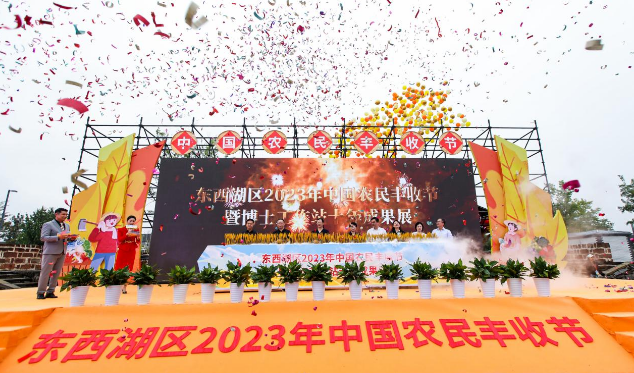 9月23日上午,秋风微凉,但在东西湖区慈惠街蔡家社区乡村共享广场上依然人声鼎沸,热闹非凡。在喜气洋洋的开场舞《龙腾狮跃》之后,湖北省农业科学院与东西湖区的相关领导用大麦稻穗这一新颖的形式,宣布了“庆丰收 促和美”东西湖区2023年中国农民丰收节暨博士工作站十年成果展正式启动。