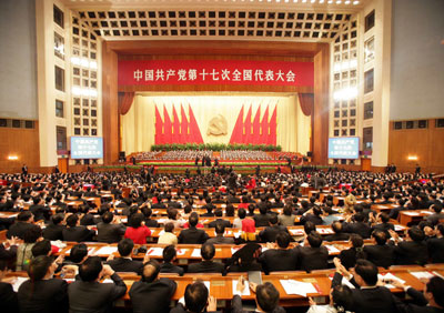 10月21日九时,中国共产党第十七次全国代表大会闭幕会开始在北京人民大会堂举行。(新华社记者 马占成 摄)
