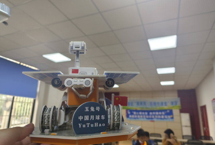 “哇,这个月球车模型好逼真呀。”当孩子们看到模型的那一刻,一双双眼睛里露出了惊喜的目光,不自觉地发出了惊叹的声音。通过现场互动式的教学和模型拼装,孩子们了解了咱们国家探月的艰辛历程,也使孩子们简单掌握了探月设备的结构知识。