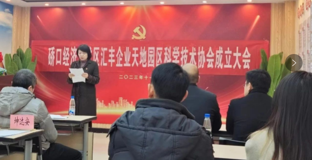 会上介绍了汇丰企业天地园区科学技术协会成立大会筹备情况、审议通过《硚口经济开发区汇丰企业天地园区科学技术协会章程》。区科协副主席佘德孝宣读了《关于同意成立硚口开发区汇丰企业天地园区科学技术协会的批复》,区科协党组书记、主席袁宏玲为园区授牌。经大会选举,产生了园区科协主席、副主席、秘书长人选,金东方实业集团董事长王晓燕被选举为园区科协主席。