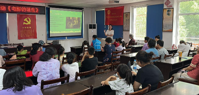 小朋友们和家长有序就坐后,老师先问大家:“最近很火的诈骗电影大家看过了吗?”有家长马上回答:“《孤注一掷》!”“一百多年前的电影是什么样的呢?”老师继续问大家,有小朋友说是黑白片、没有声音的;大家知道的真不少。老师接着介绍了我们今天的主题—电影的诞生,带大家一起了解电影的发展史。