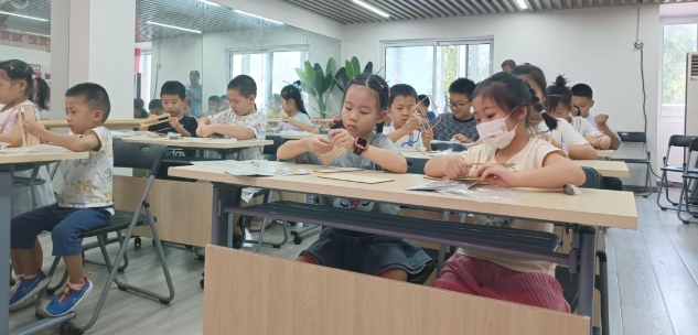 最后到了自制悬浮列车的手工环节,老师给大家示范步骤。接着派发道具,同学们拿到材料包,高兴地手舞足蹈,兴奋地把木片和磁石固定在轨道上,做好轨道,再把列车组装好,列车和轨道相斥,自然就悬浮起来了。坐在后排的大哥哥动作最快,其他同学还在组装,同学们看到他拿到前面展示的他的列车,全班异口同声惊叹,悬浮的列车太酷了!大家争相加快速度,有些零部件穿不过去的主动求助老师和同学。经过同学们的精心制作,悬浮列车陆续出现在家长们的眼前,家长们纷纷称赞不已。
