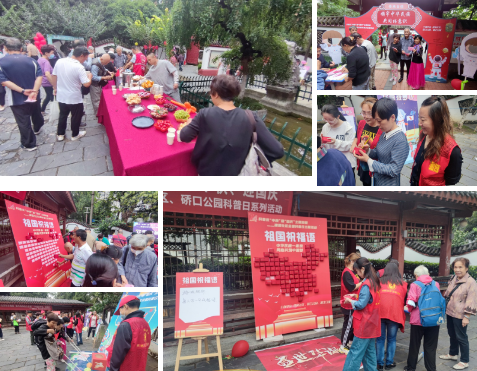 满园飘香的丹桂,如梦似幻的复古建筑在加上红红火火的国旗和气球,给建国社区的居民会就一幅诗情画意,美不胜收的节日氛围。2023年9月22日上午9:30,建国社区携手硚口公园、湖北日报、国药福芯之家在尚和书院开展别开生面的科普庆中秋,迎国庆的主题科普日系列活动。