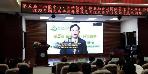 12月9日,硚口区科协联合湖北省第三医院开展学术交流活动举办的“第五届‘相聚中山·共话健康’体卫融合与慢病管理学术研讨会暨2023年湖北省早癌筛查规范管理及适宜技术新进展培训班”在医院学术报告厅举行,会议由副院长刘黎明同志主持,纪委书记兼工会主席邓小容同志代表医院致欢迎辞,省卫生健康委员会副主任、一级巡视员柳东如同志及湖北省健康管理学会副会长吕永曼教授出席会议并致辞。