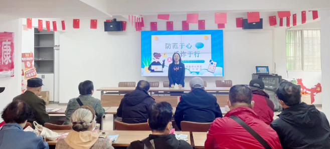 为切实提高辖区居民防范、识别电信网络诈骗的意识和能力,维护群众利益、预防和减少电信诈骗案件的发生,强化源头预防工作,营造安全稳定的社会环境,11月16日下午,荣西社区联合交通银行武胜支行开展“防范于心 反诈于行”防诈骗知识宣传讲座。