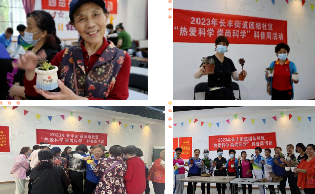 为加强社区居民的科学文化素养,提升社区文化氛围,促进社区精神文化的发展。2023年5月25日长丰街团结社区开展“热爱科学·崇尚科学”科普周活动——植此春色·玩趣自然”多肉植物DIY养护课堂,学习多肉种植知识,体验种植乐趣,为社区居民提供文化娱乐,更好地发挥文化的社会效益。