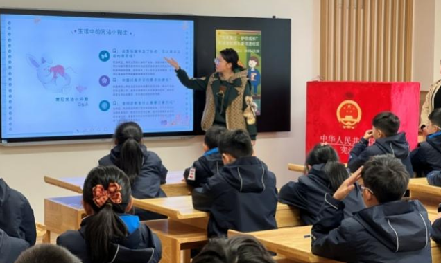 参加本次活动的是长春街第三小学五年级(1)班的同学们,看到武汉大学的哥哥姐姐们走进班级里来和他们面对面交流互动,孩子们显得既开心又激动。此次活动分为情景导入、理论宣讲、案例表演、知识问答等五个部分,为了拉近同学们与宪法的距离,活动一开始就给大家播放了动画《我与宪法的一天》。