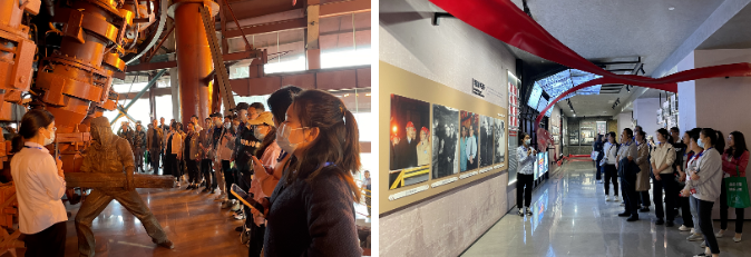 走近一号高炉,不禁为它庞大的体量而震惊,站在毛主席曾经站过的位置,通过高科技重现第一炉铁水出炉的震撼场面,让全场人员赞叹不已。一楼的展厅,为我们重现了武汉一号高炉的历史印记,让我们明白钢铁在历史发展中的重要价值,以及新中国对钢铁的无限期望。