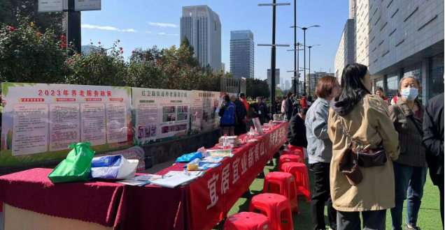 11月7日上午,红卫路街道联合街道社工站、辖区养老服务机构以及社区养老服务设施运营商开展了主题为“宜居宜业新青山,养老服务在身边”的养老科普宣传活动。
