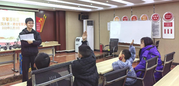 2023年11月19日上午,工人村街道青馨居社区科普园地开展了“科技展现未来,缔造智慧馨居”科普活动。青山区第二轻工业学校的老师、学生代表以及辖区内四点半课堂的25名小学生共同参与了此次活动。