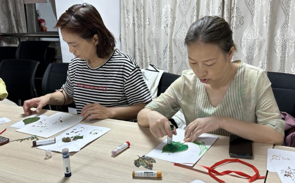 植物拓印书签的制作过程通过将植物的鲜花或叶子放置在特定纸张上,用笔或刷子轻轻涂抹,使植物的形状和纹理完整地呈现在纸上。这种简单而有趣的活动不仅锻炼了居民们的动手能力和观察能力,也加深了他们对植物的了解与关注。