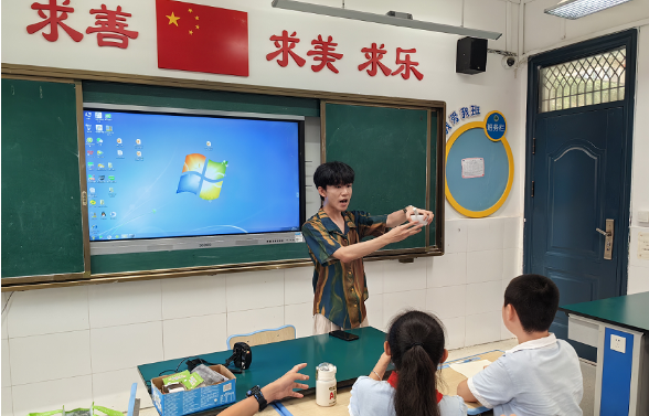活动中,同学们在老师,科技志愿者安排引导下,两两一组,亲手操作、亲手体验,结合科技志愿者的现场讲解在互动中学习科学知识、在协作中学习团队合作能力和创造能力,感受科技魅力。