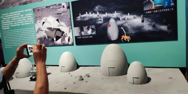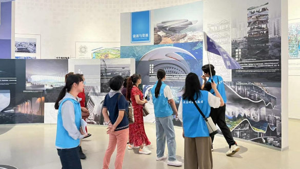 当讲解员带领大家来到了未来建筑展示厅,这里没有建筑模型,只有人们对未来建筑的想象,以及一些未来建筑设想的主题“归于大道 人类命运”立足于当下的社会发展与技术应用,围绕人们未来将要面临的挑战,探讨对于人、自然、建筑三者关系的思考,提出对未来建筑的思考,推动中国建筑发展。
