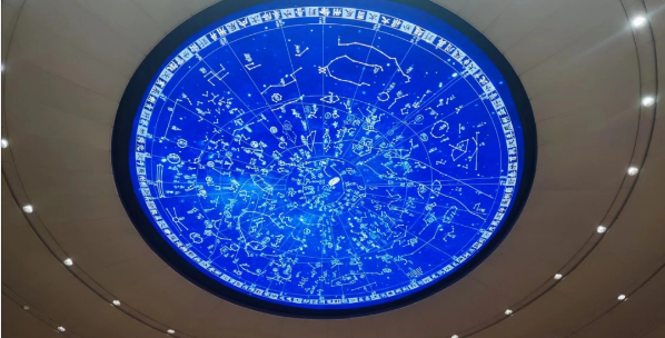 进入中国建筑科技馆后,最先映入眼帘的是序厅的圆形天顶,是突出最具代表性的中国传统文化、建筑科技符号。学员们一起参观了中国建筑科技馆序厅的圆形天顶,据讲解员介绍圆形天顶采用现存苏州文庙的世界最早的实测石刻天文星图《天文图》,原图观测年代在北宋年间,刻于南宋年间。《天文图》标注了星空、星座、星宿、黄道、赤道等天文图像,反映了古代宇宙观。四周的八个方位陈放的是我国现存最早,等级最高的八组斗拱模型,这些斗拱代表了中国最具代表性的建筑科技符号,向我们展示了中国传统建筑文化。大家在此驻足良久。深刻感受到了我们祖先在建筑方面展现的智慧及魅力。