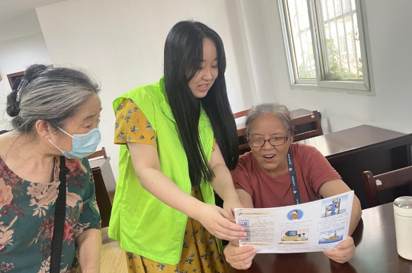 “当遇到气象灾害时,正确的知识和宣传可以帮助大家保护自己,并减轻损失。下面我从暴雨、台风、地震等三个方面的自然灾害说起……请记住,无论遇到哪种气象灾害,关注并遵循当地政府或灾害管理机构的警报和指导是至关重要的。保持冷静和谨慎,随时准备应对紧急情况,并确保您家人和自己的安全。”社区科普活动室传来科普员的讲解声。