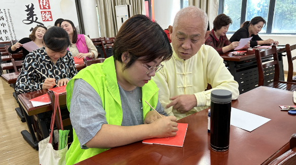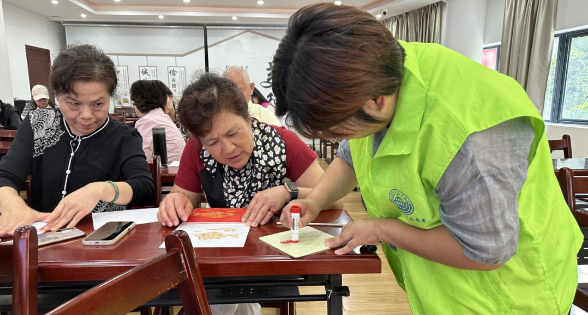 为了让居民们更直观地了解非遗技艺的制作过程,讲座还特别设置了互动环节。在现场,非遗老师手把手教居民们如何进行非遗拓印手工。拓印是一种古老而实用的手工技术,通过压印将图案或文字复制到纸张或其他材料上。在老师的指导下,居民们纷纷动手尝试,体验到了拓印的乐趣。