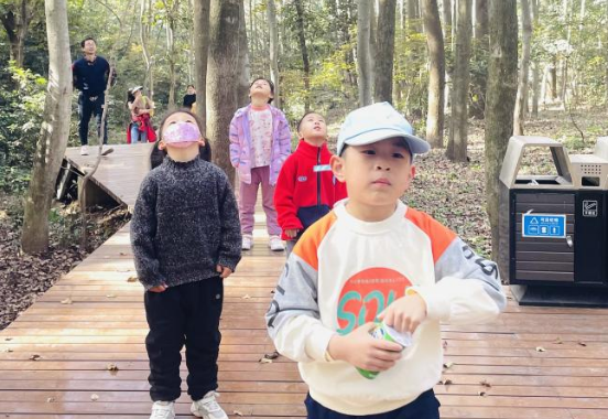 宁静的山林、清新的空气、淡淡的草木香,人们远离城市的喧嚣,在大自然里感受科普的魅力。基地建在八分山里,沿着木质架空栈道而下就到达了植物科普教育基地的大门。栈道全线长565米,宽2米,串联了六个节点,每个节点都有独特的名字:苦槠抱石、紫藤漫依、地被花开、枫香四射、白栎连理、盘蛇出洞。各个节点处均设有民间画家的野趣写生,一路走来树上还挂着各种各样的“森林生态小知识”。节点处的休憩点挂着醒目的黄色“盒子”,翻开盒子的右下角还能看到树木的开花结果,十分有创意。居民们每走到一处都能有新的发现,使得这个徒步式科普课堂更显得妙处横生。