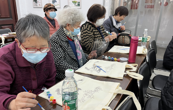 为了让社区退休老同志及居民更加深入理解“廉洁”二字的涵义,活动最后科普老师为居民发放“廉洁环保袋”的制作材料,大家挑选样式不同的环保袋,并充分发挥丰富的想象力,认真地在帆布袋上绘画、涂色,画出自己心中的“莲与廉”,一朵朵莲花在袋上悄然绽放,廉洁之雨浸润着每个居民的内心。历经半小时的创作,原本简单的白色帆布袋被点缀一新,一个个清新雅致、象征清正廉洁的帆布袋诞生了。