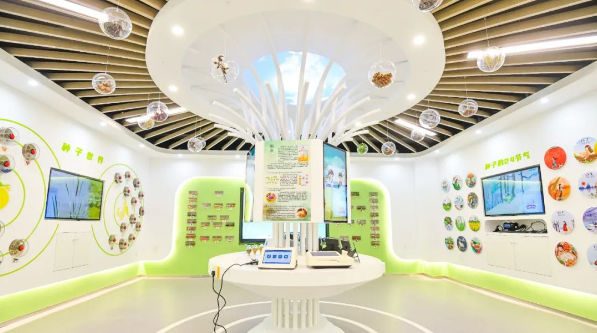 “这个是我们研发的‘大屏+小屏’双屏互动技术,连接云端平台,能够提高用户浏览的互动性。”武汉泰可电气股份有限公司(项目承建公司)董事长管保安介绍,科普馆以中小学生为主要科普受众对象,运用了适合中小学生特点的互动展示方式,结合VR体验等技术手段,通过展板、图片、视频、实物、故事等方式,不仅能让受众了解种子的名称、结构、特点,还可以了解植物的生长、发展和演变过程,在满足好奇心的同时,激发孩子们对种子及相关科学知识的探索兴趣。
