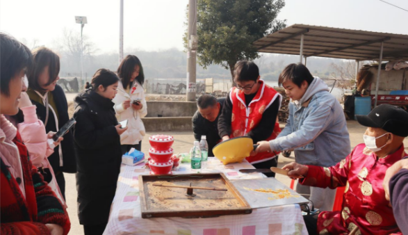 共叙乡情,共襄发展。洪山街道大华社区组织科技志愿者、民俗艺人、医护工作者等前往牛山村开展“传承非遗文化 共度新春佳节”帮扶慰问科普活动,为村民开展免费测量血压、血糖、中医问诊以及健康知识宣讲等科普活动,充分发挥自身的优势助力乡村全面振兴。
