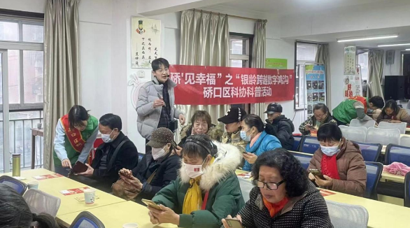 为助力老年人融入数字时代,充分享受改革发展的成果,增强老年人在科普文化需求方面的获得感、幸福感、安全感,帮助中山社区内的银龄老人更好地融入数字时代。1月18日,硚口区科协联合荣华街中山社区,开展以“‘硚’见幸福”之“银龄跨越数字鸿沟”为主题的科技助老活动。