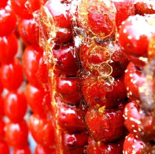 在萧瑟的冬日里看起来红火喜庆的冰糖葫芦是中国传统的小吃之一,如今糖葫芦的品种也从山楂、山药等发展到了多种水果,而且很多是在街头食品摊现场制作,看起来更加诱人。然而专家指出,街头现场制作的糖葫芦往往受到环境限制,不能按照卫生标准的要求清洗再烘干原料,而清洗过的水果往往粘不住糖浆,因此很多商贩省略了清洗的步骤,而消费者只能寄望于“不干不净、吃了没病”了。这样制作的糖葫芦不仅存在原料不洁净的问题,而且往往在露天或半露天的环境下制作和叫卖的糖葫芦,还不能达到防尘要求。北京的冬天经常是风大尘土飞扬,糖葫芦在这种情况下很容易沾染细菌。