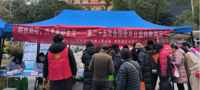 为进一步弘扬雷锋精神,培育和践行社会主义核心价值观,吴家山街吴南里社区在“学雷锋”活动周联合东西湖区中医医院、东西湖区残疾人联合会、武汉市中医医院在中心广场开展“科技助听,共享美好生活”——第二十五次全国爱耳日宣传教育活动,切实提高辖区居民的爱耳、护耳意识,普及耳病和听力障碍防治知识,减少听力残疾的发生。