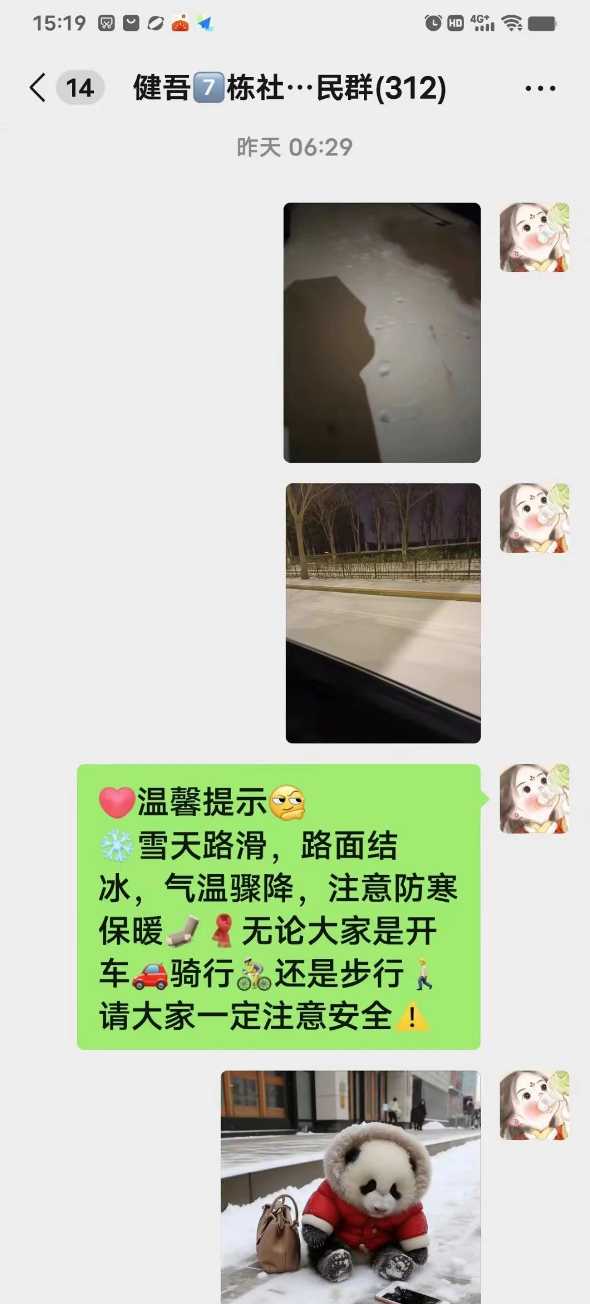 青山镇街道青源社区科普工作者高雅昕是社区忙碌的“小红人”,身着红马甲,和社区同事一起对小区内主要干道、行路及社区大门外的主要通道的积雪、结冰进行清除,保证道路的畅通、安全。开展抗雪防冻安全隐患排查工作,重点巡查房屋安全、燃气管网等公共设施防,确保防范措施落实到位。通过“敲门行动”上门提醒独居老人雨雪天气注意防寒保暖,尽量不要外出,宣传冬季取暖防一氧化碳中毒。通过各网格群积极转发冬季防寒保暖安全重要提示,增强了广大居民对冬季取暖安全防护意识。
