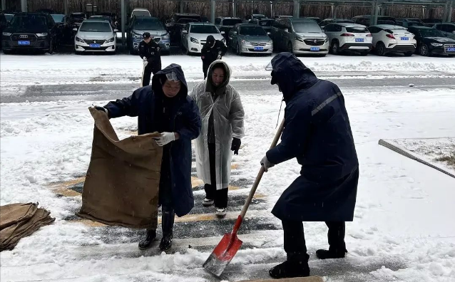 中冶武勘科技志愿者们以雪为令、扛起责任,迅速组织全体员工紧急处理掉落的树木断枝,加固车棚和岌岌可危的大树,及时清除主干道积雪与冰层,全力保障公司正常工作秩序和员工出行安全。