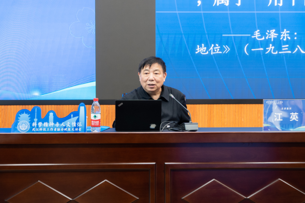 市科协网讯 3月26日,“科学精神与人文情怀——武汉科技工作者融合赋能大讲堂·走进长江设计集团”报告会在长江设计集团报告厅举行。来自武汉市各区、各学会、协会研究会,部分高校、国企,科技型企业的科技工作者代表及教育界、文化界、新闻界等方面代表300余人聚集一堂,共同展开一场科学与人文“春天的约会”。报告会特邀中国军事科学院研究员、博士生导师江英先生作题为“毛泽东的工作方法与领导艺术”的精彩报告。