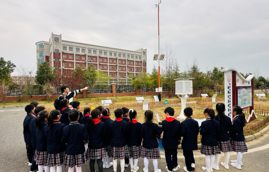 气象志愿者引导学生有序地参观了设立在校园内的气象科普园地,各类地面气象探测设备让学生能够更加直观地了解气象观测、预报制作、预警发布等气象知识,激发他们认知气象、探索自然的兴趣。