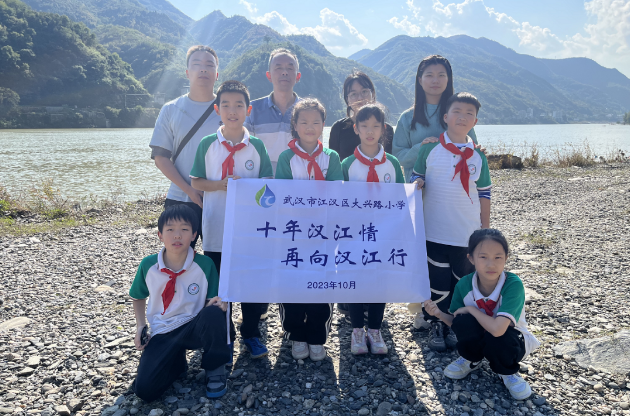 图为江汉区大兴路小学师生开展汉江水质监测行动
