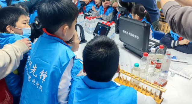 在水知识互动环节,社区工作人员准备了长江水、东湖水、沙湖水、汉江水和水质检测实验器材,志愿者带领孩子们亲手操作,观察实验现象。通过实验,孩子们直观地感受到了水污染对环境的破坏,更加深刻地认识到了保护水资源的重要性。随后,志愿者以科普问答的方式,让孩子们学会了许多节约用水知识,大家还结合自己的生活经历积极分享了节约用水的小妙招,现场气氛热烈。