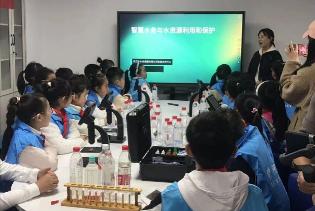 市水务集团团委的青年团员志愿者以“互动课堂”的形式在阮家台社区科普馆内给大家带来了一堂生动有趣的水知识科普课,让孩子们在参与的同时又增长了见识。课堂上,青年团员志愿者用通俗易懂的语言讲解了智慧水务与水资源利用和保护,并通过混凝沉淀实验,将原本加入了牛奶的浑浊水还原成清水,小朋友们直呼神奇。