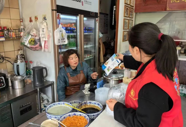 随之,社区工作人员撒网式排查各个门店,对便利店、副食店、餐饮店中的产品进行仔细检查,是否有临期产品,是否有三无产品,食材是否新鲜、有无变质,是否有相应行业经营许可证......对发现的问题,督促负责人限期整改,同时,社区工作人员叮嘱老板要落实食品安全主体责任,切实把牢食品安全关。