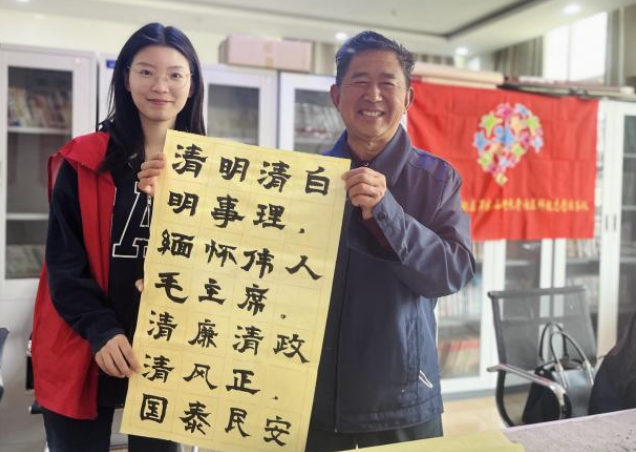 几千年来,人们在这个“气清景明”的节气中,进行“祭之以礼”的追远活动,为已逝的亲人、祖先,庄重地送上自己的思念与敬意。这神圣的生命交流仪式,一年年轮回、一代代传承,构成了人们顽强生存和追求幸福的重要动力。活动中,书法班的老师向社区居民及科技志愿者们介绍清明节的由来和习俗,并为大家准备了关于清明节的古诗词,书写班的钱福成班长还作诗一首:“清明清白明事理,缅怀伟人毛主席。清廉清政清风正,国泰民安人心齐。追思领袖世长辞,继承遗志永不息。”,他们书写的不仅是词句,更是对传统文化精髓的传承和对现代文明风尚的倡导。活动现场墨香四溢,大家在书写中交流心得,用笔墨传达对先人的敬意与思念,共同营造充满文化气息的社区氛围。
