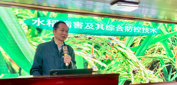 培训首先开展《水稻主要病害发生规律及防控技术》主题授课,由华中农业大学教授、博士生导师黄俊斌主讲。